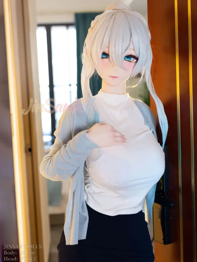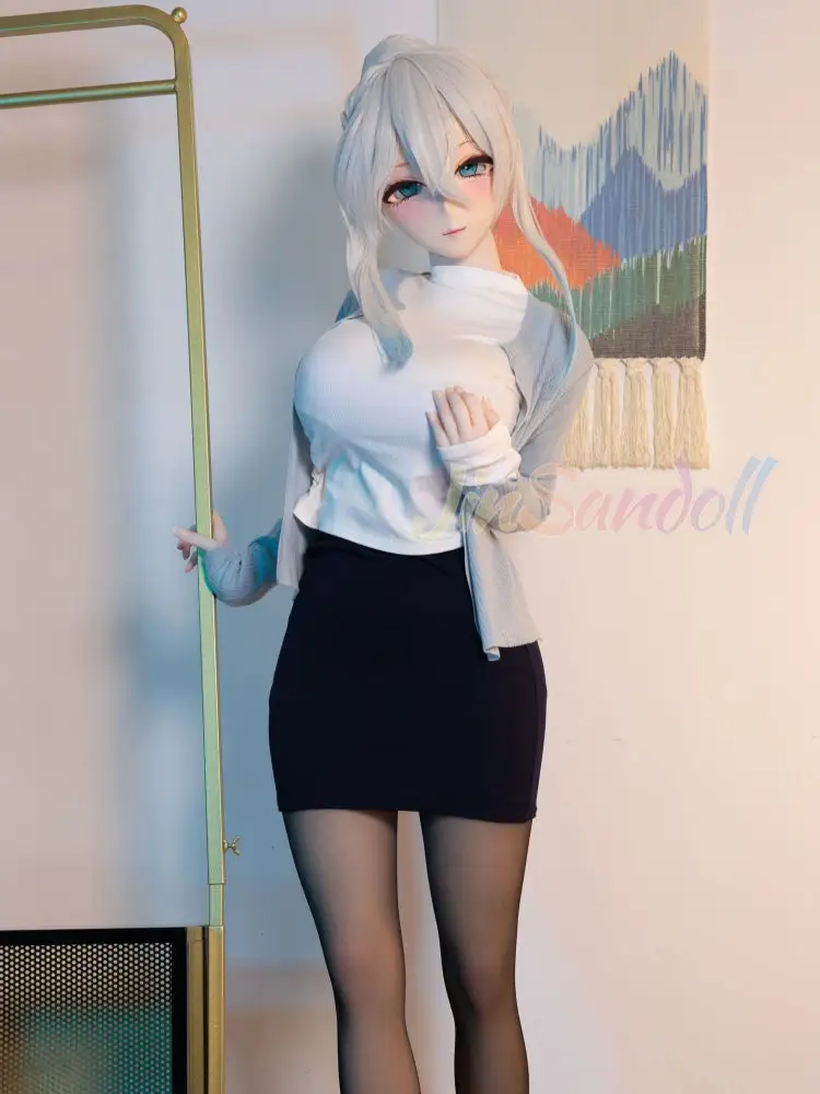 Take one look at this hentai sex doll, and you won’t be able to take your eyes off her! Her silky white hair cascades down her shoulders, radiating a mysterious and deadly allure. Those large, glistening eyes subtly curve upward, as if whispering, "Come closer~" Her loosely draped blue knitted cardigan, paired with a barely-there white inner layer, strikes the perfect balance between innocence and seduction, drawing you into her irresistible charm.