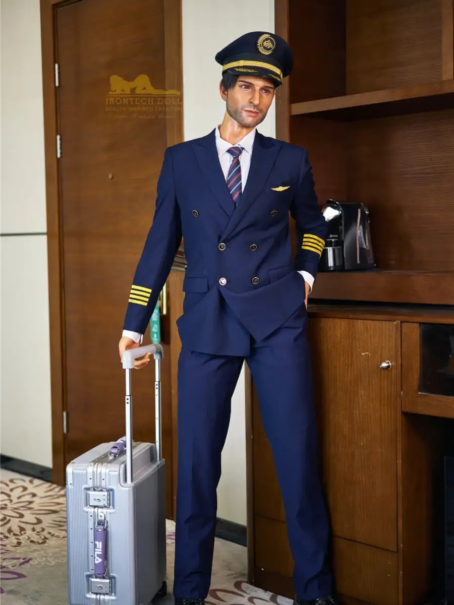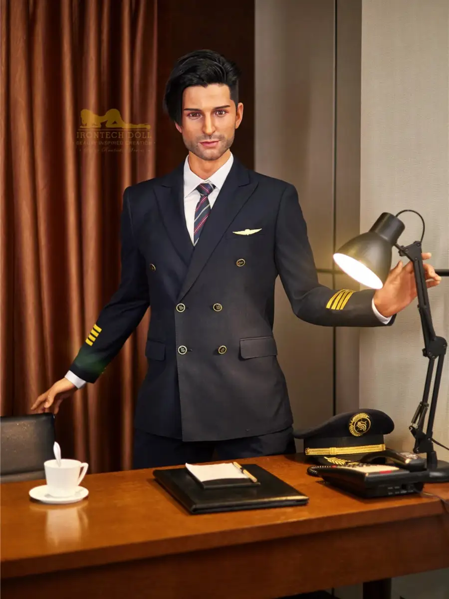 This doll is incarnated as an upright and charismatic captain. With a height of 176cm, broad shoulders and strong pectoral muscles, it is as if one can see a robust figure standing in front of the cockpit door, with a well-sculpted chest and tight waistline, together with a slightly wild beard, it exudes an irresistible mature masculinity.