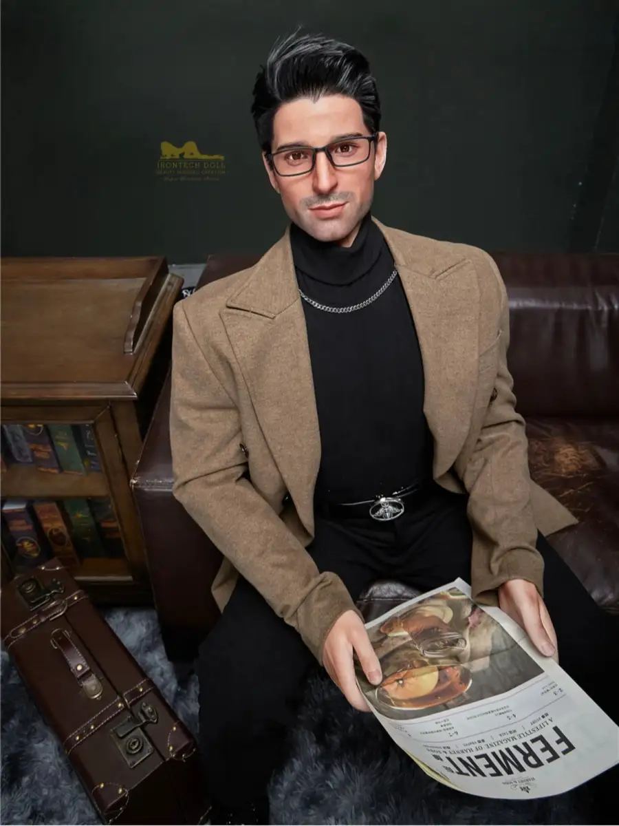 This Male Sex Doll embodies the charm of a confident modern gentleman, featuring defined pectoral and abdominal muscles that create a strong masculine impression. His stylish hairstyle, deep gaze, and sleek glasses add sophistication and sensual appeal. The tall, well-balanced body proportions and upright stance enhance immersion during intimate moments.