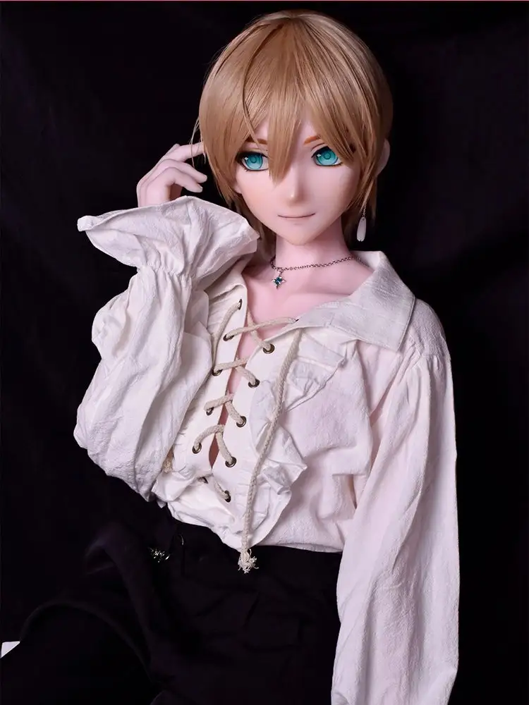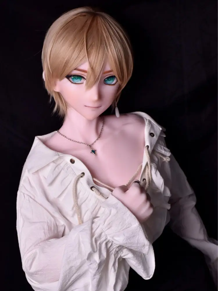 02 AppearanceThis anime male doll has charming green eyes, a pointed nose, and fair skin — giving a fresh, handsome impression straight out of a visual novel. His yellow super short hair radiates a unique charm. Holding a blue rose, he slowly walks toward you, making your heart race with anticipation.