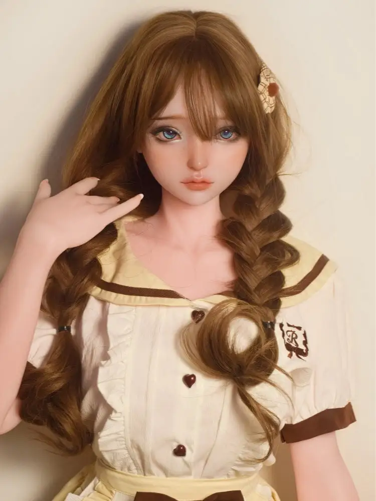 F5555 This realistic silicone anime sex doll has smooth chestnut brown hair, eyebrows that match the hair color, and orange makeup. The overall style is fresh and attractive. Her clear blue eyes seem to be able to see into your heart, and with her exquisite face, people will be moved at first sight and want to get close to her and explore her.