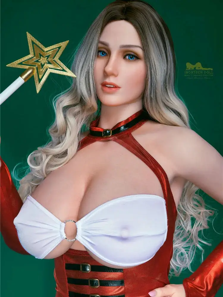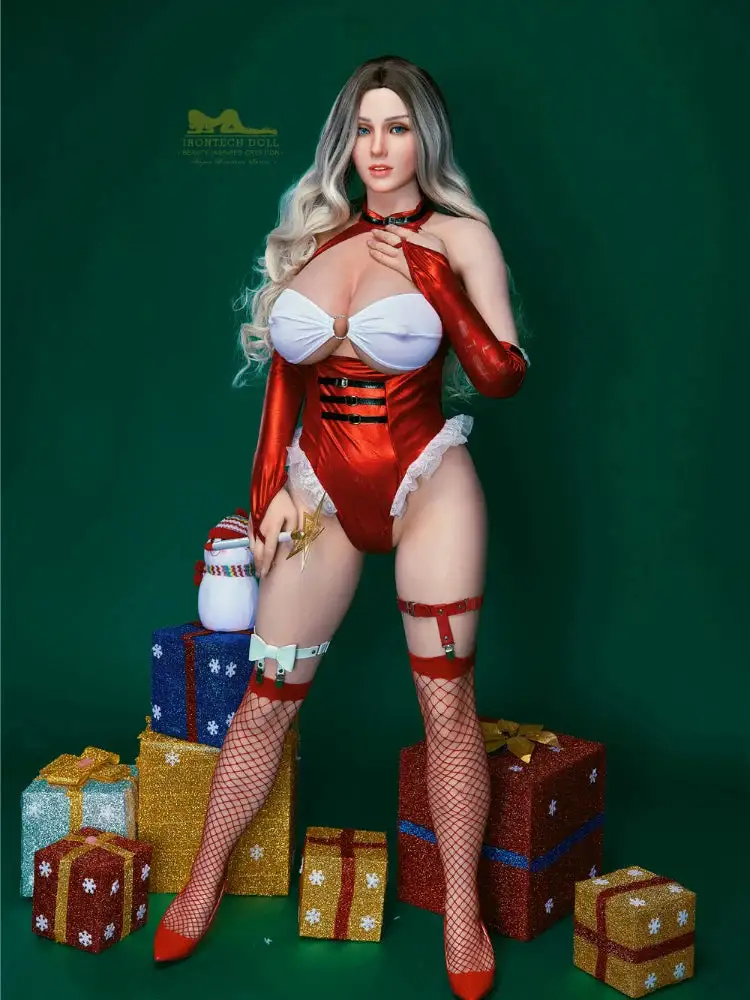 This blonde bleached and dyed sex doll exudes a strong Christmas vibe in her fiery red dress. Her face is designed to be lifelike and sexy, with a curvy, seductive body. Every detail is exquisite and subtle, whether it's her posture or that seductive expression, it's all to die for, a perfect blend of beauty and sexy glamour, as if it could lead people into endless fantasies.