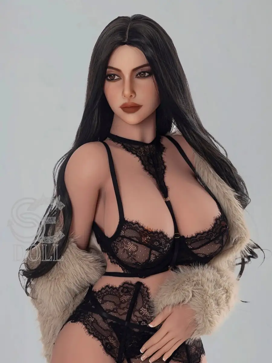 This bbw asian sex doll has perfectly proportioned H cup breasts, 88cm circumference and soft and delicate TPE material, making every contact seem like touching real skin. The plump double peaks under the black lace underwear are looming through the beige velvet coat, adding a bit of mystery and teasing. Her cool eyes seem to invite you to explore this irresistible sexiness. She is the dream partner of everyone who loves plump curves.