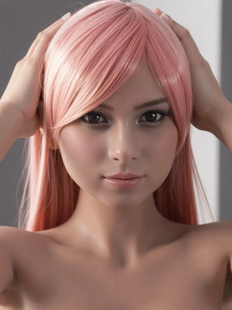 This realistic Asian sex doll has flowing pink hair and highly recognizable eye makeup. Her features are delicate, resembling a real Japanese girl. She has a gentle and obedient temperament, silently matching your rhythm, accompanying you through countless fantastical and pleasurable sexual explorations, allowing you to experience the tenderness of being with an Asian girl.
