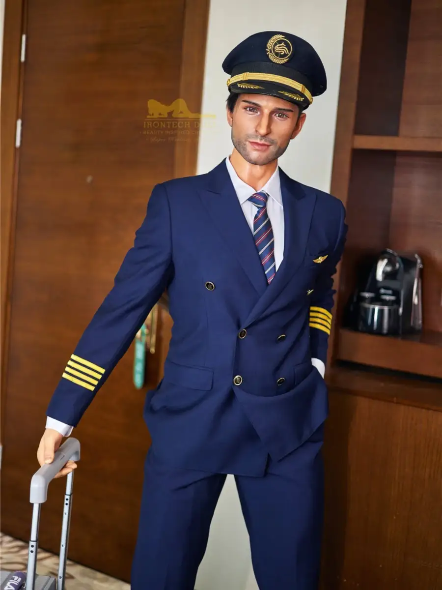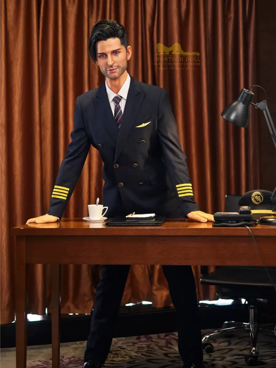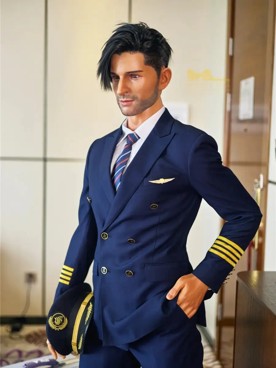 This doll is incarnated as an upright and charismatic captain. With a height of 176cm, broad shoulders and strong pectoral muscles, it is as if one can see a robust figure standing in front of the cockpit door, with a well-sculpted chest and tight waistline, together with a slightly wild beard, it exudes an irresistible mature masculinity.