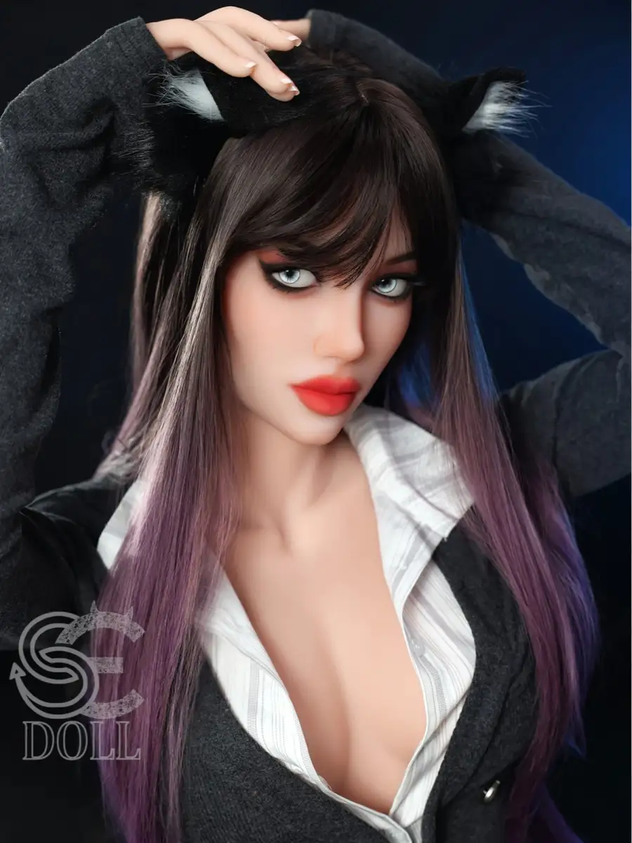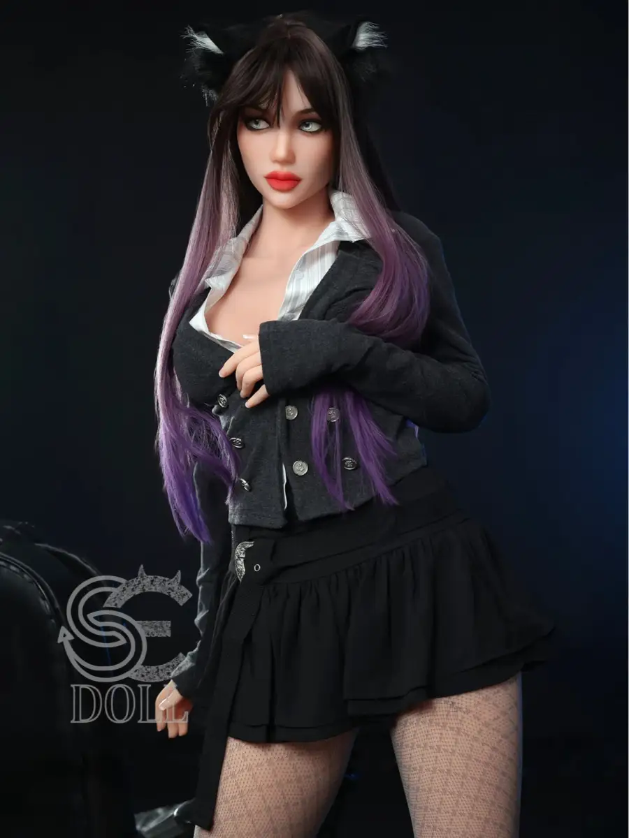 The F4879 sex doll has charming gradient purple long hair, paired with a playful cat ear headband. Her eye makeup is even more eye-catching, with all-inclusive black eyeliner outlining a sharp look, exuding a wild and uninhibited charm that makes people unable to stop.