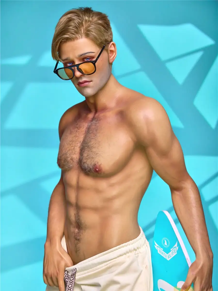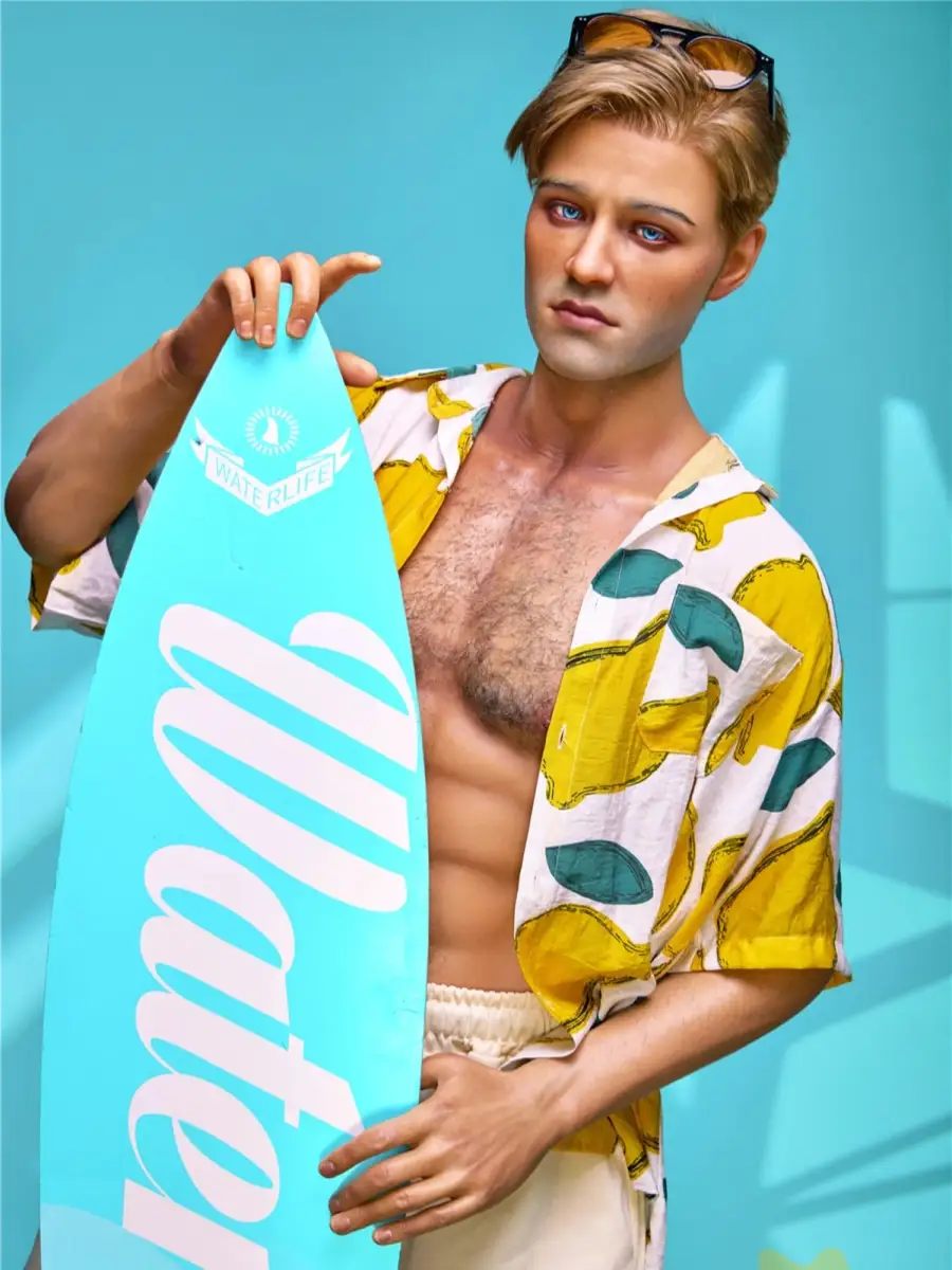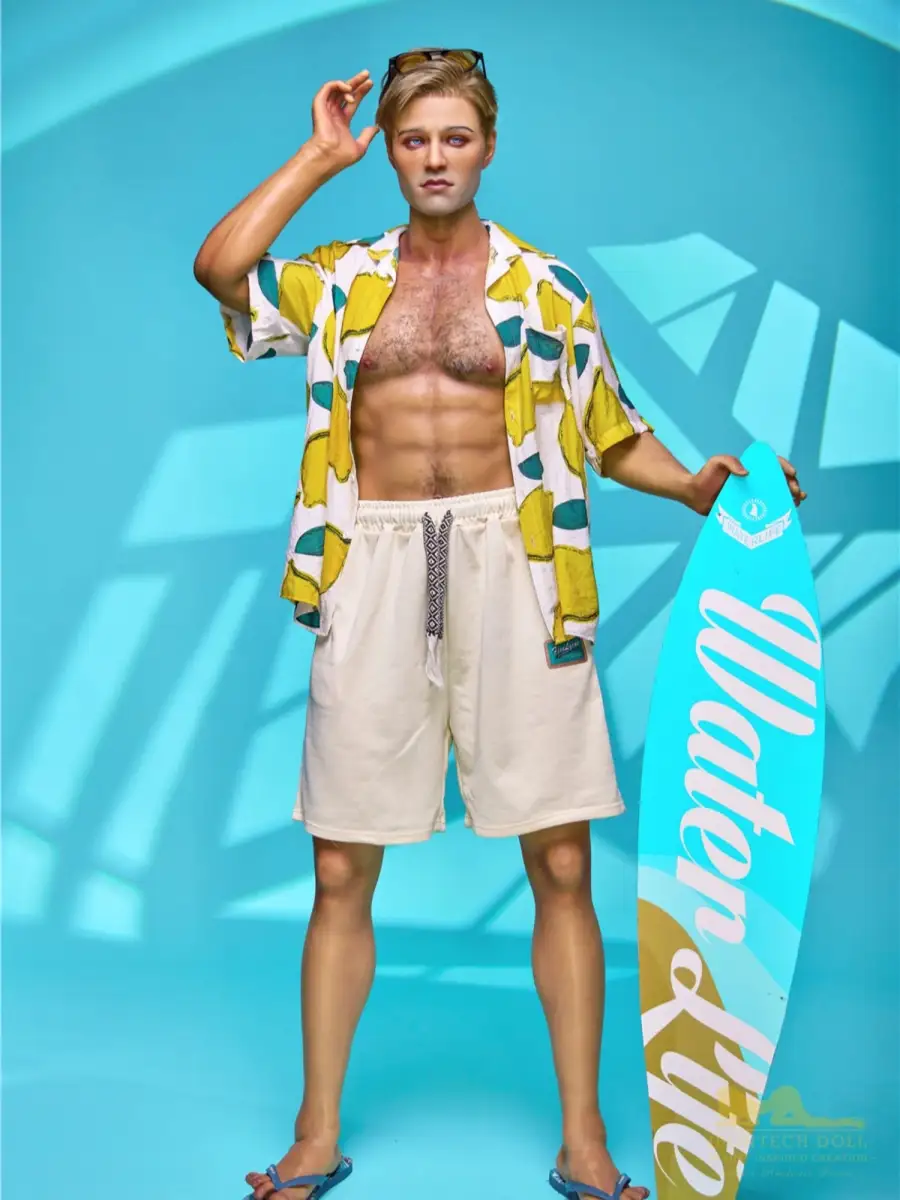 This F235 Surf boy 176cm/ 5ft9 Silicone male sex doll from Irontech Doll is sure to take your breath away! Feel like you've got an Adonis in the bedroom with his strong 8-pack abs, and let the sun-drenched, half-naked body and surfboard in his left hand set the scene for a rockin' good time. Who said boys can't surf and have fun? Live the dream with your very own!