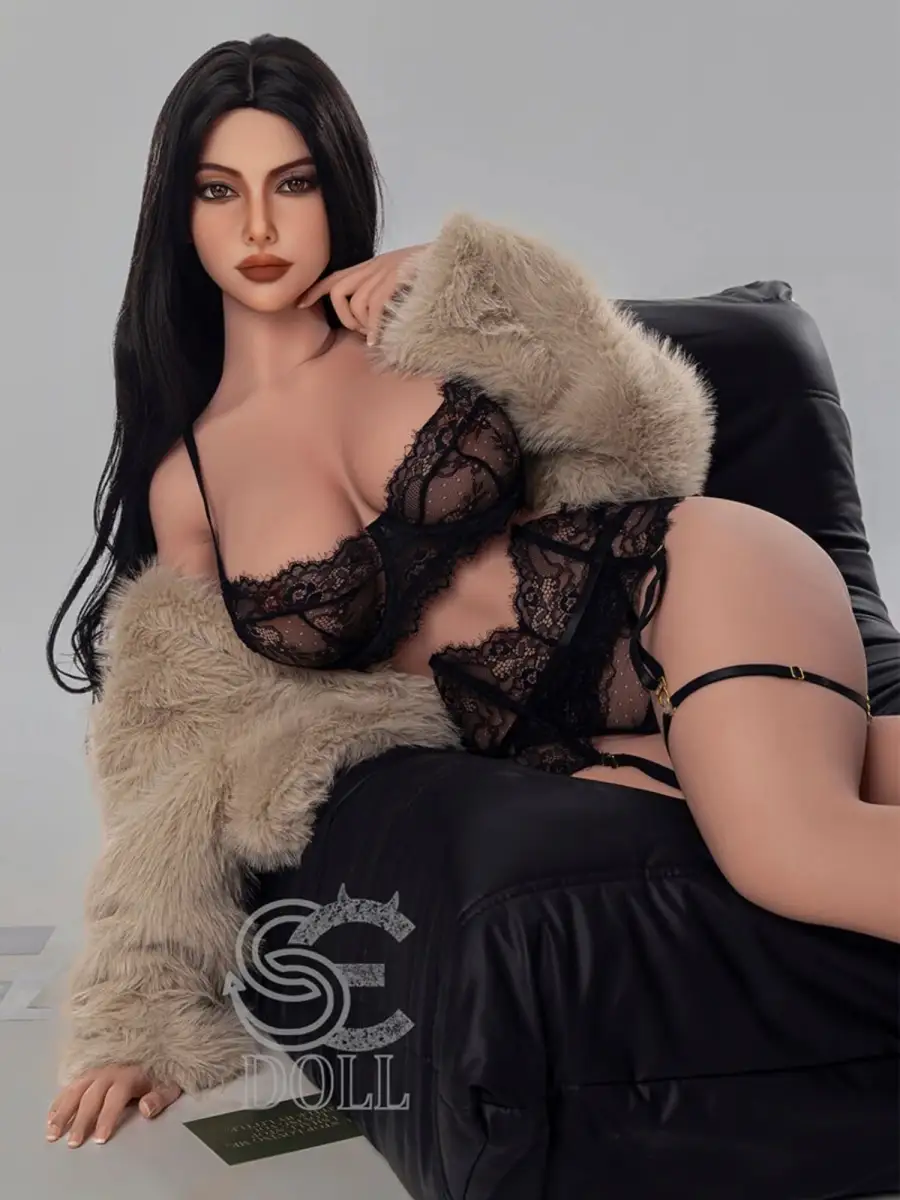This bbw asian sex doll has perfectly proportioned H cup breasts, 88cm circumference and soft and delicate TPE material, making every contact seem like touching real skin. The plump double peaks under the black lace underwear are looming through the beige velvet coat, adding a bit of mystery and teasing. Her cool eyes seem to invite you to explore this irresistible sexiness. She is the dream partner of everyone who loves plump curves.